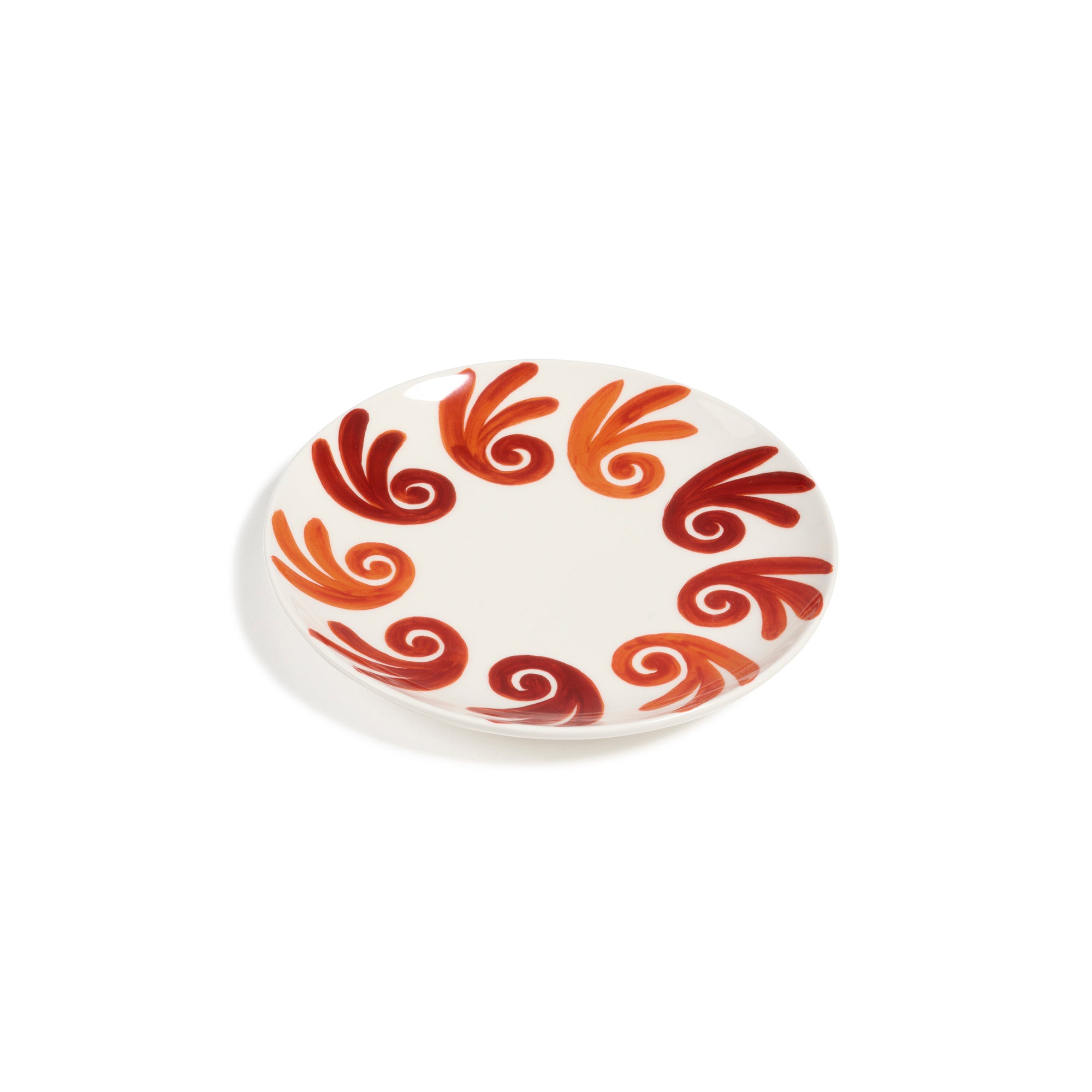 Handcrafted salad bowl in fine porcelain adorned with hand-painted Gaia pattern in burned orange.
