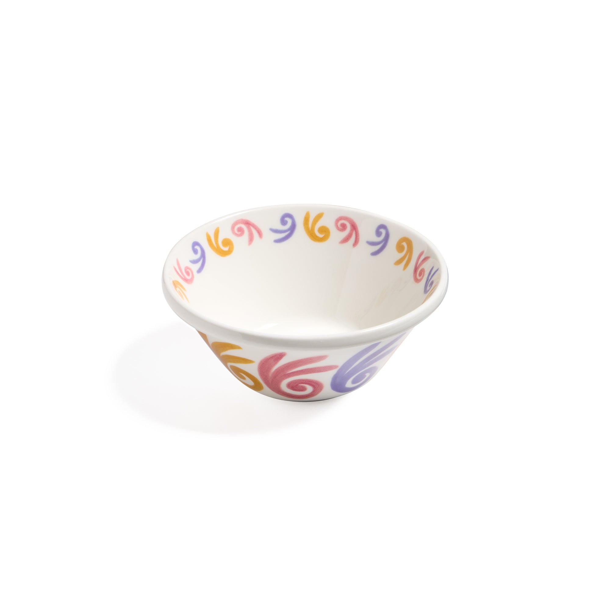 Handcrafted charger plate in fine porcelain adorned with hand-painted Gaia pattern in purple-pink & yellow.