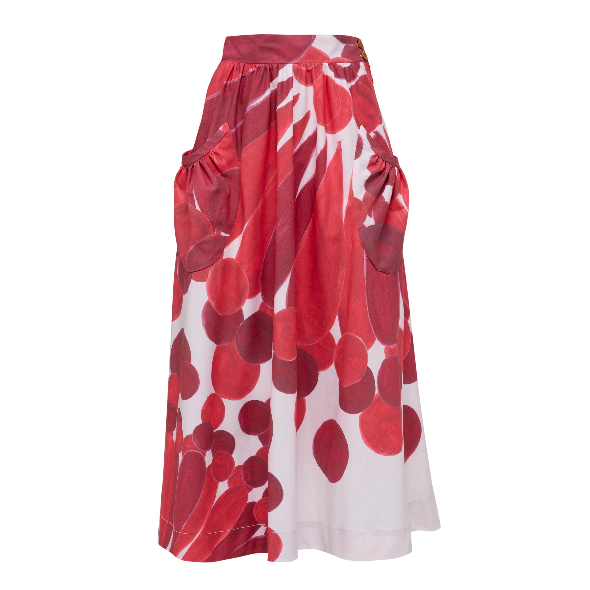 Ariadne Cropped Strap Top, handprinted with our Helios pattern in red hues and white