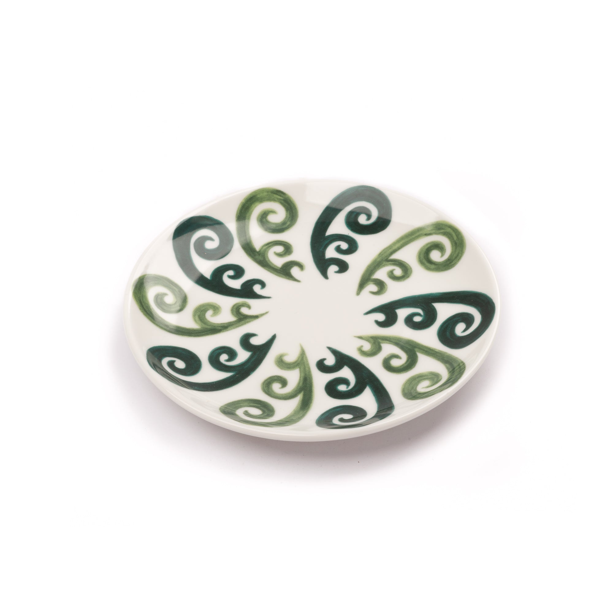 Handcrafted espresso cup in fine porcelain adorned with hand-painted Peacock pattern in two-tone green.