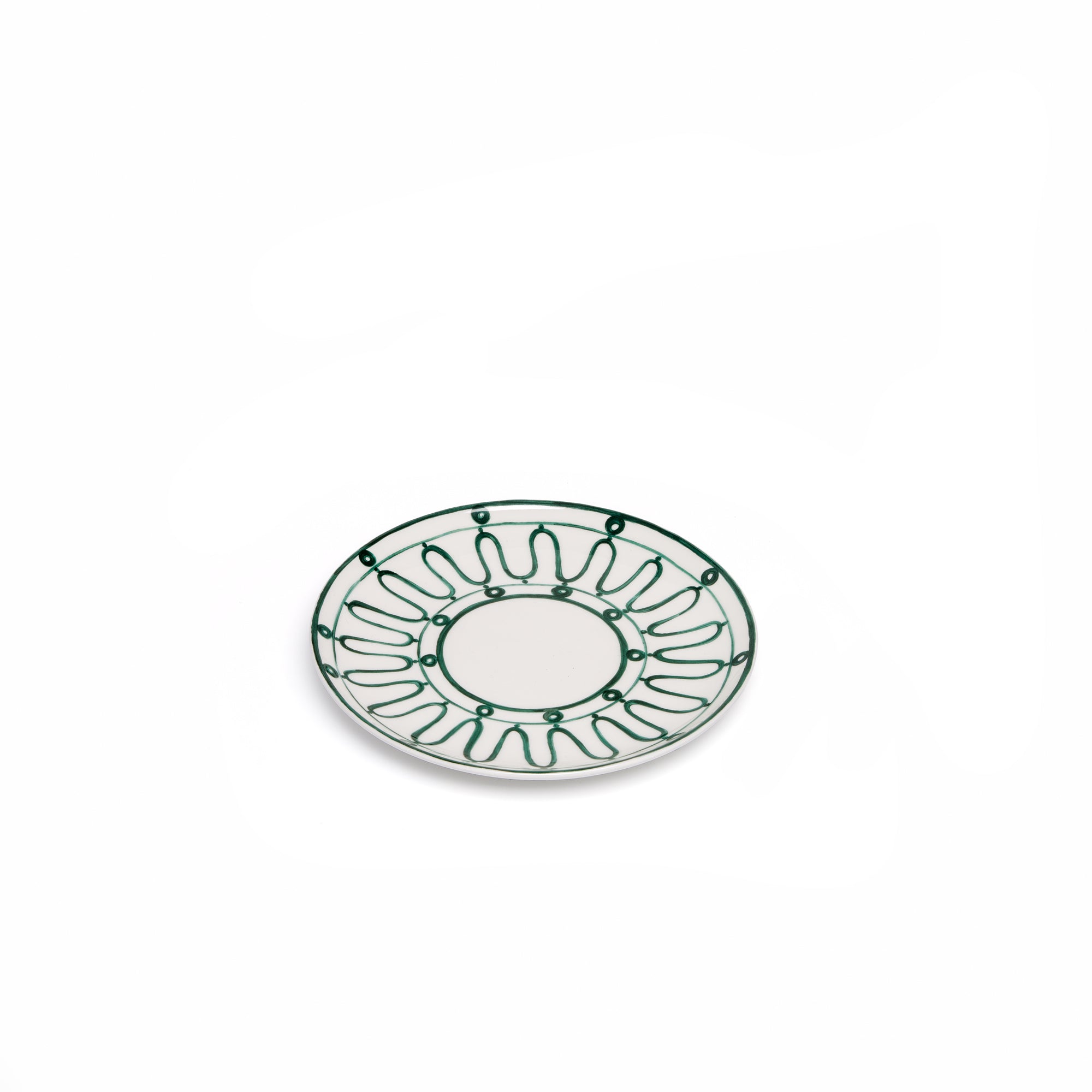 Handcrafted bowl in fine porcelain adorned with hand-painted Kyma pattern in either green, brown or blue.