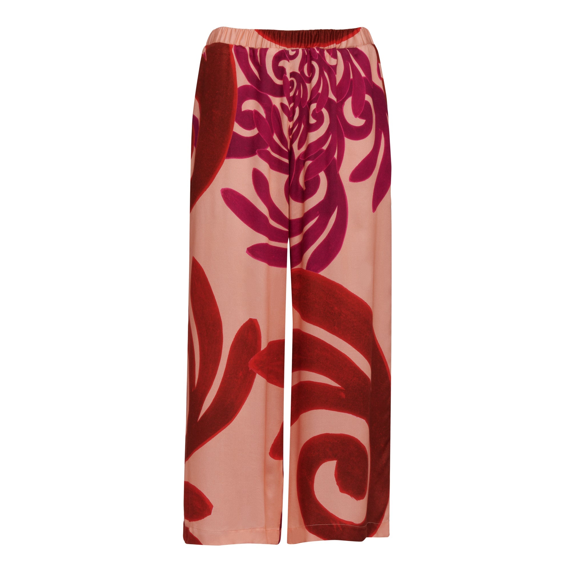 Aura Cropped Top, handprinted with our new Gaia pattern in peach, red and magenda.