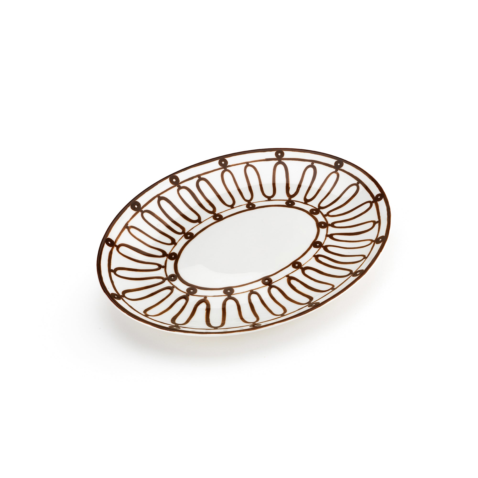 Handcrafted large charger plate in fine porcelain adorned with hand-painted Kyma pattern in either green, brown or blue.