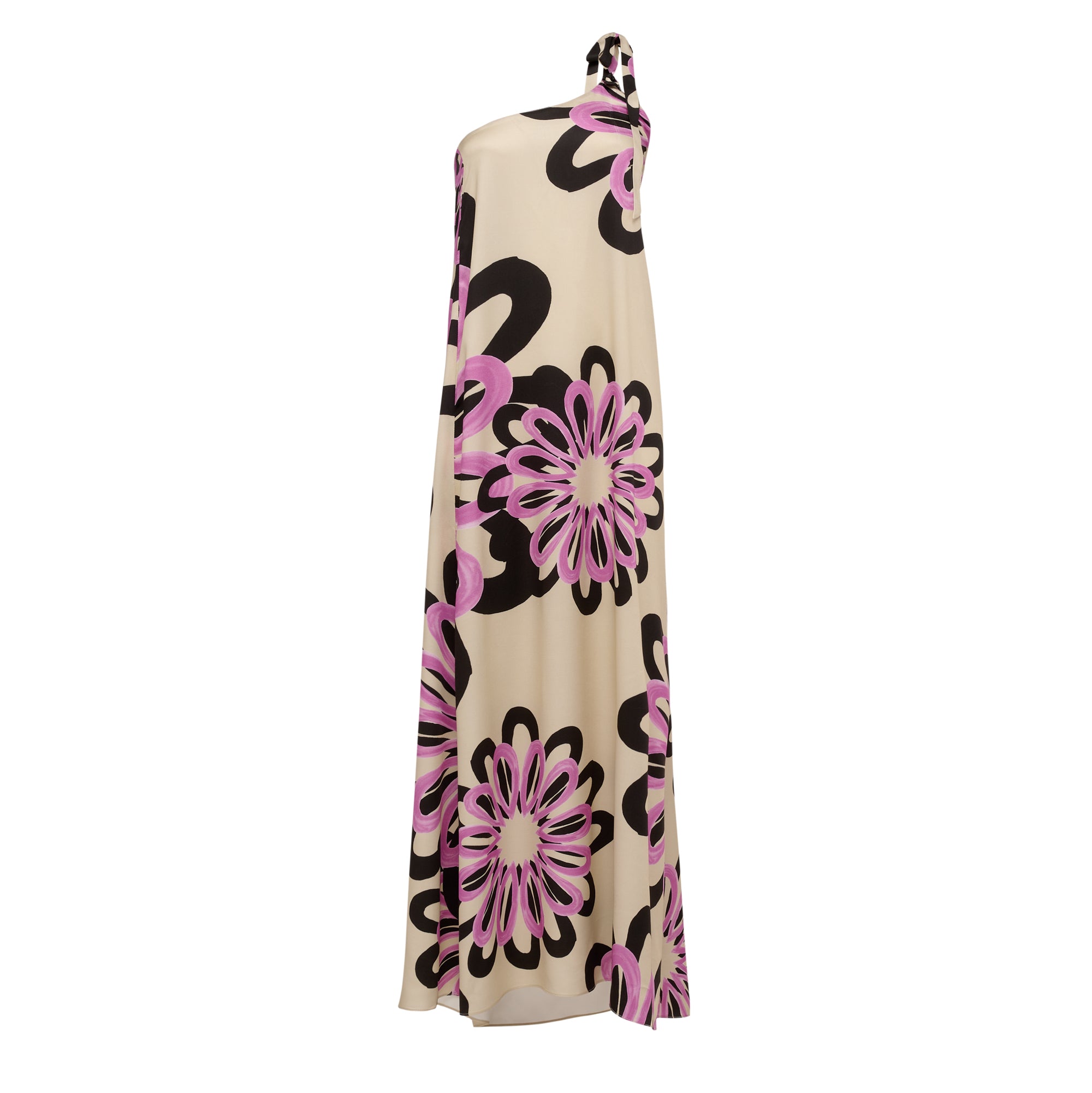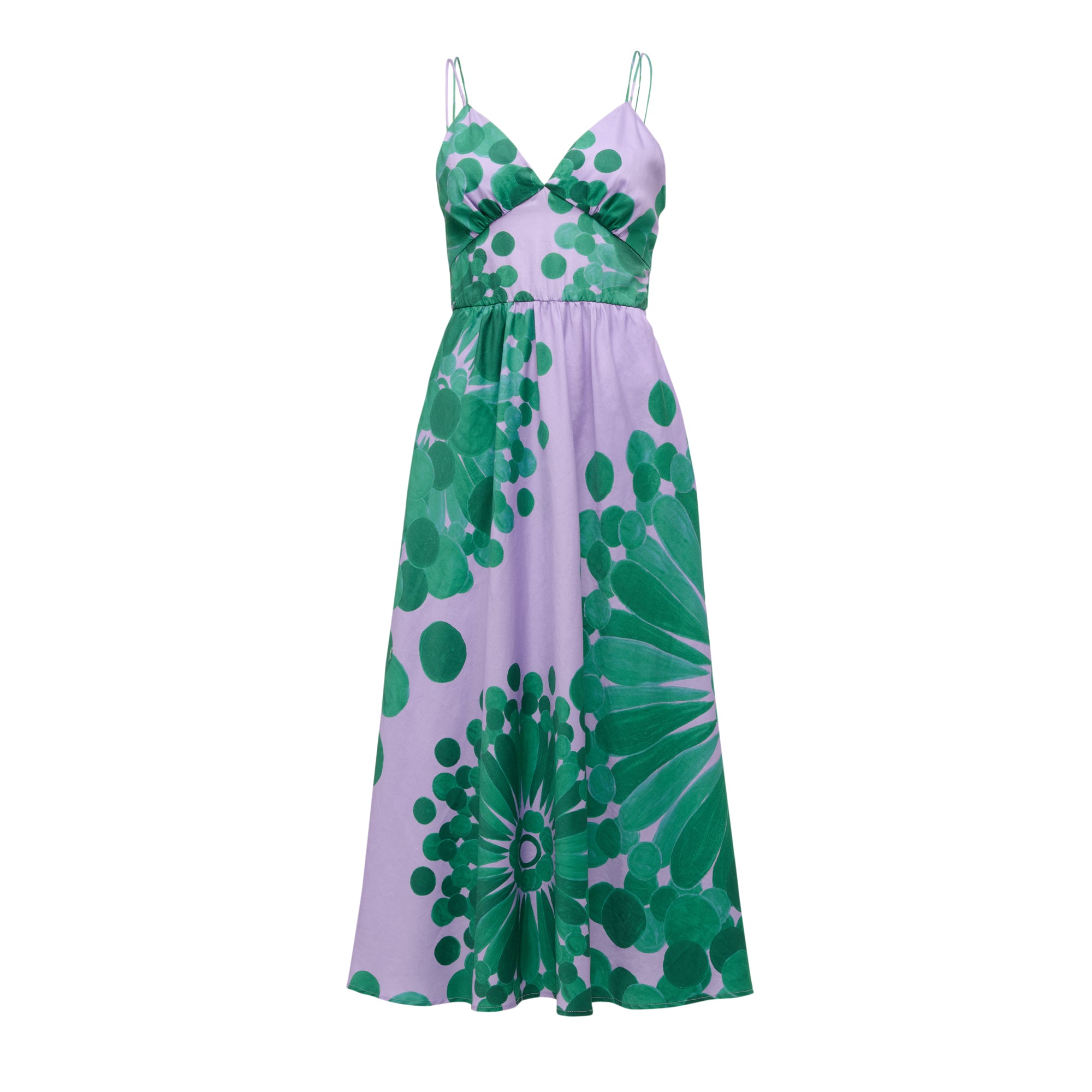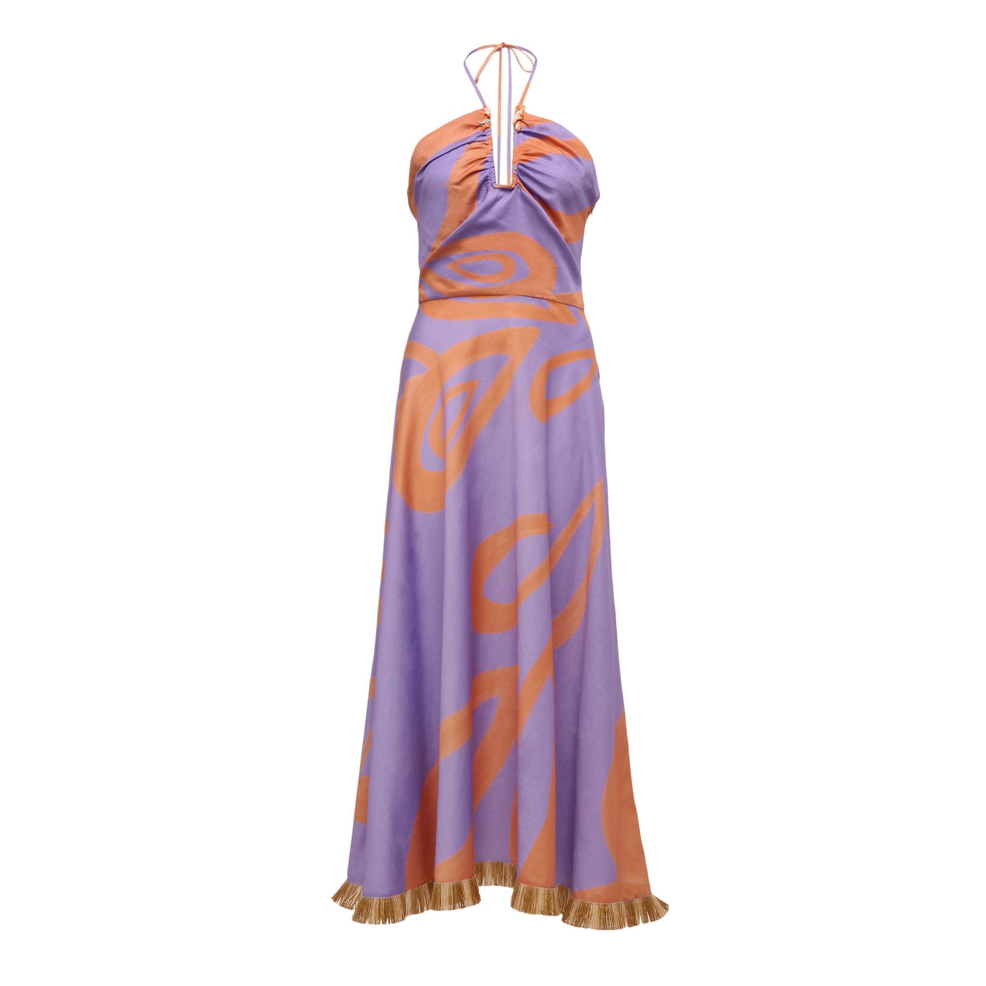 Handmade Pajama cropped pants handprinted with the Helios pattern in pink hues.